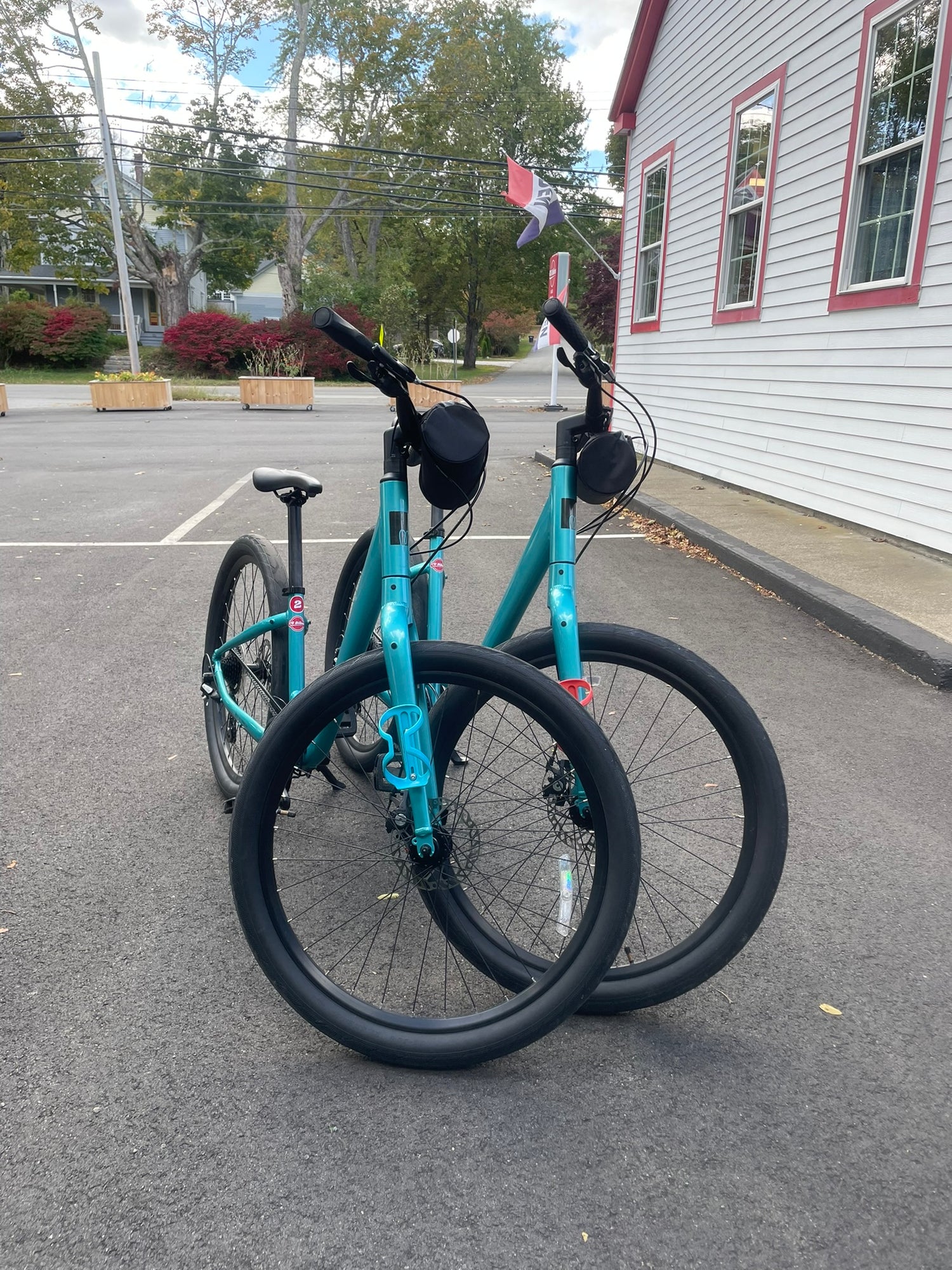 Our fleet of Giant Roam E+ electric assist bikes are the best way to explore the midcoast and beyond. The Roam E+ is a Class 1 E-Bike, meaning it goes up to 20mph with pedal assist only (no throttle). It features 5 assist levels so that you can just take the edge off your workout, go further, or breeze around with minimal effort.