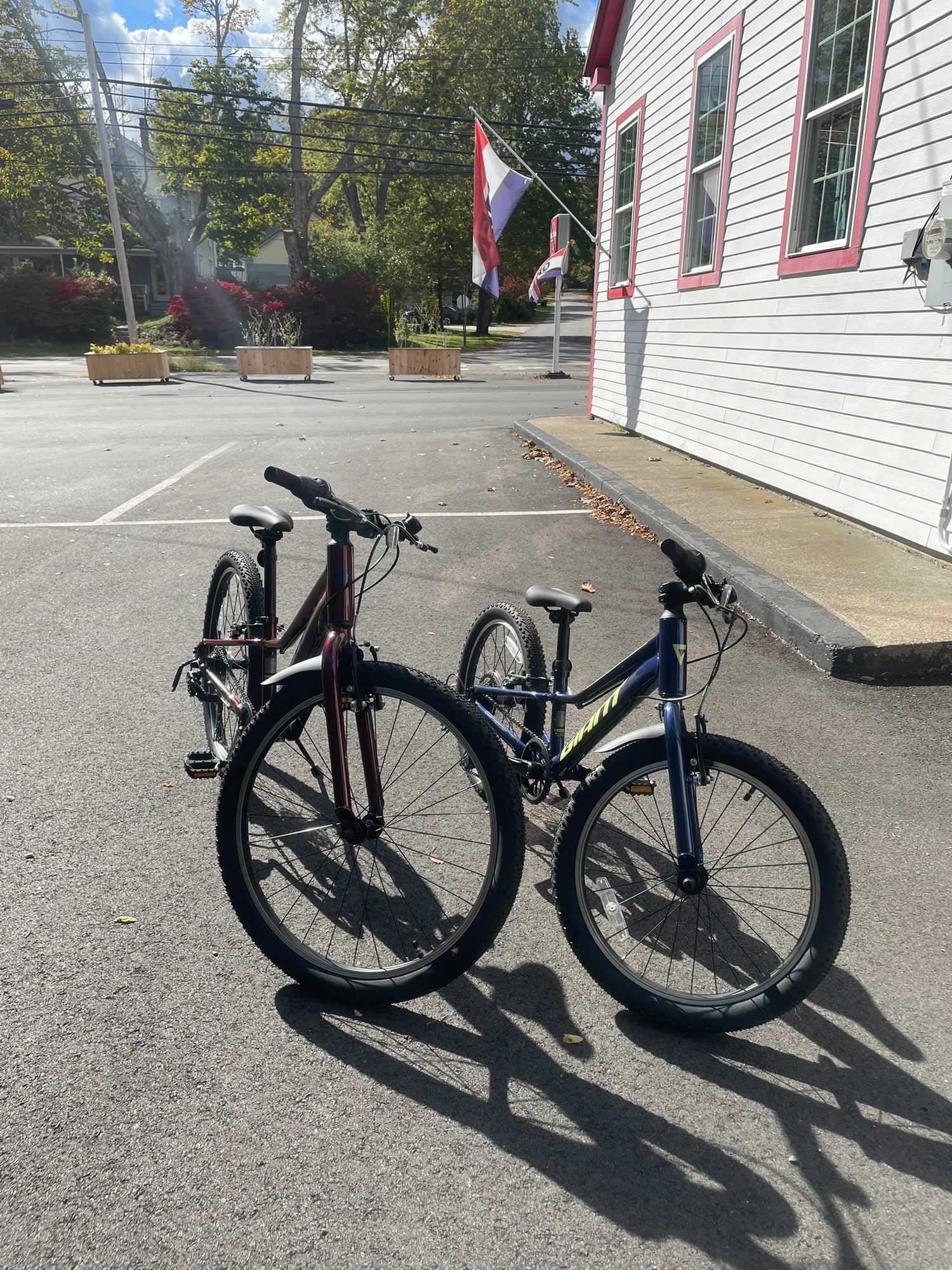 We have 20" wheel kids bikes (typically age 5-7), 24" wheel kids bikes (typically age 7-12), and a Burley trailer (up to 2 children, 100lbs total max weight capacity).
