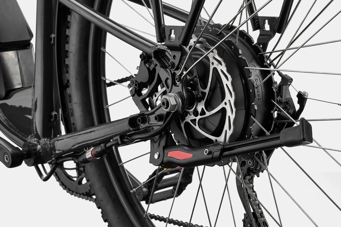 - Bafang hub drive electric assist, 750W, 80Nm max torque.